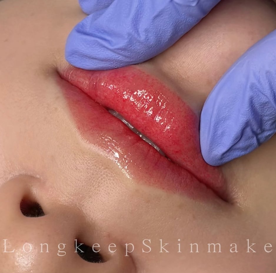 • 中央部分の施術:生き生きとした唇を表現するためのボリューム感のある色素注入方法